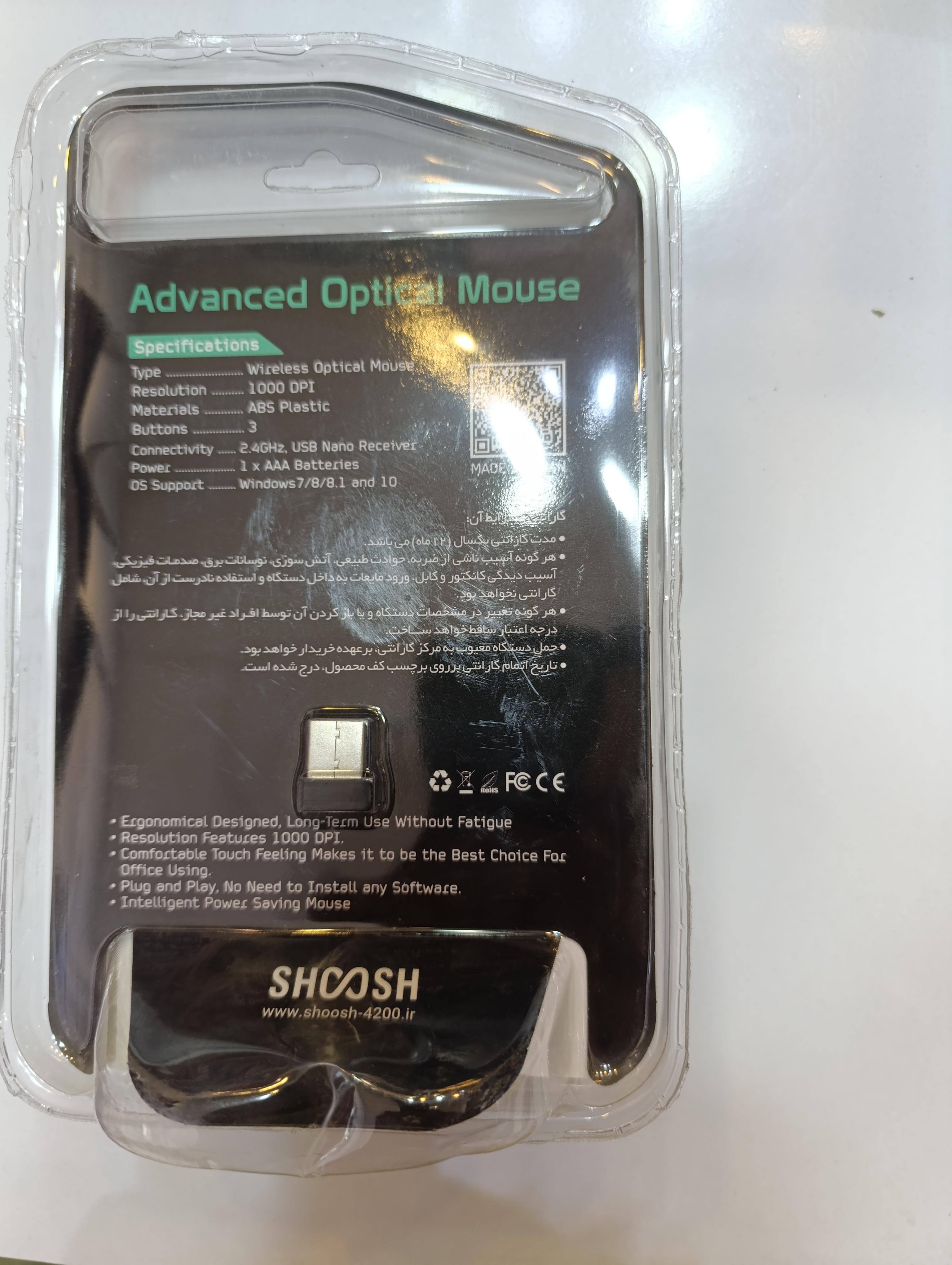 موس بیسیم مارک شوش نوع رابط دانگل USB محدوده دقت 1000 DPIمدل 26W